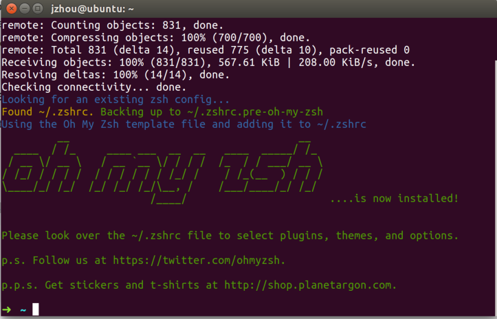 sh -c "$(curl -fsSL https://raw.githubusercontent.com/robbyrussell/oh-my-zsh/master/tools/install.sh)"