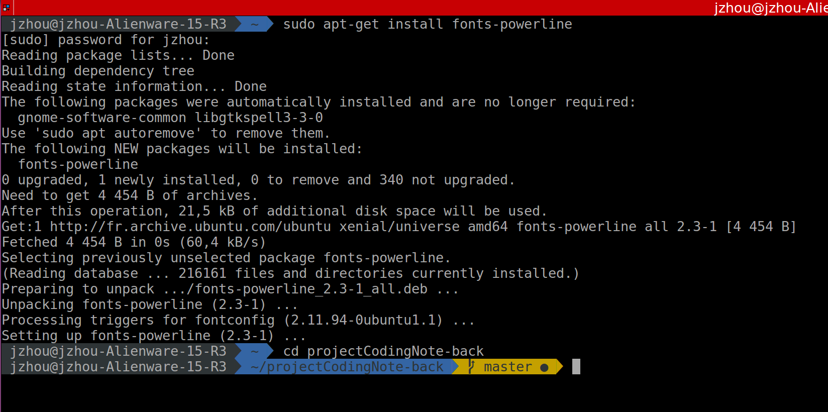 由于agnoster主题使用了powerline中的字体,很有可能在没有相应字体的环境下,terminal会有如下字体显示问题